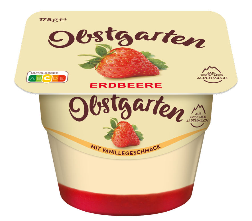 The milk for our products is sourced locally, depending on the region and country in which the product is made. This approach enables shorter transportation routes and better freshness of the milk. Obstgarten is available in the delicious varieties: strawberry, blueberry, cherry or apricot, on a fine cream cheese preparation, with a choice of natural or vanilla flavor.
