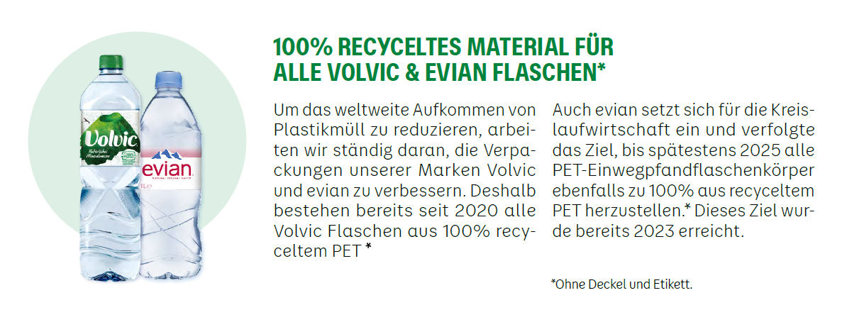 Um die Kreislaufwirtschaft voranzureiben, ist Danone 2017 der Ellen MacArthur Foundations New Plastics Economy Initiative beigetreten. 2018 unterzeichnete Danone das Global Commitment on Plastics, das von der Ellen MacArthur Foundation in Zusammenarbeit mit dem UN-Umweltprogramm ins Leben gerufen wurde, und arbeitet seither an der Umsetzung unserer Ziele.