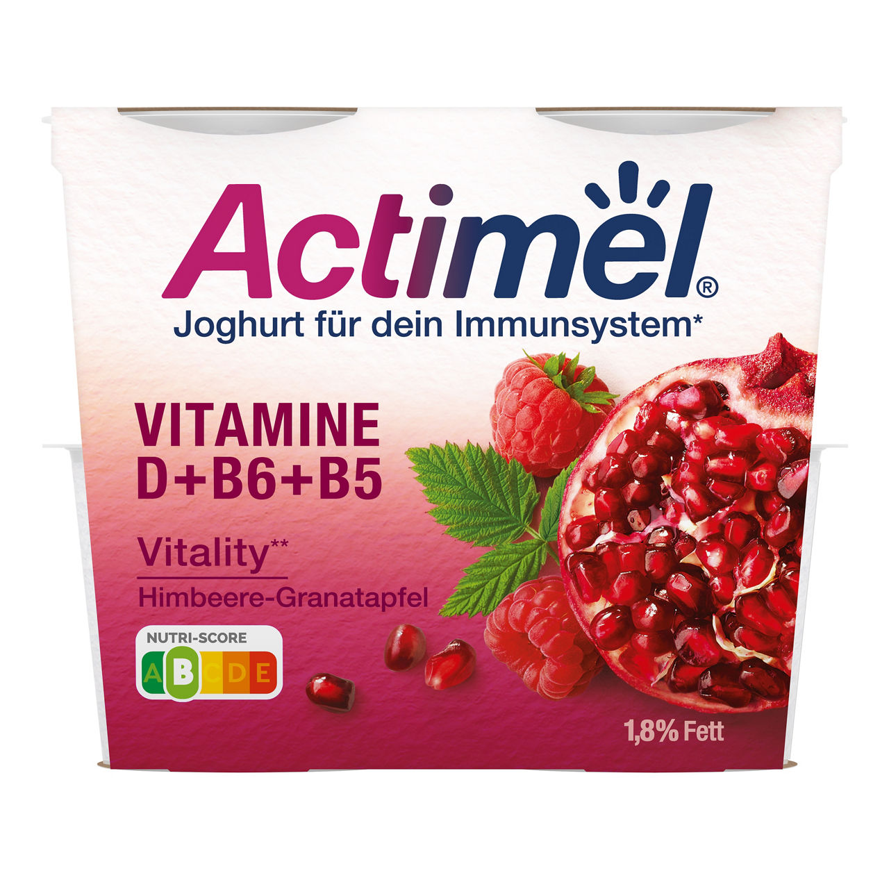Actimel Joghurt hat einen niedrigen Fettgehalt (< 1,8 Gramm pro 100 Gramm) und enthält maximal 9,2 Gramm Gesamtzucker pro 100 Gramm. Des- halb erhalten alle Produkte der Linie ein grünes „B“ im staatlich geförderten Nutri-Score-Bewertungs- system und werden damit als Lebensmittel mit ei- ner guten Nährwertqualität eingeordnet.